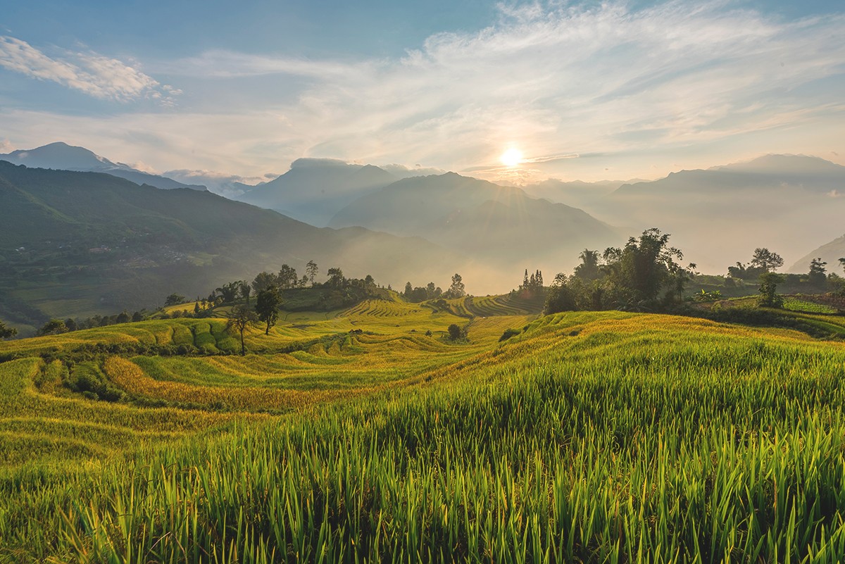 Located in Bat Xat district, Lao Cai province, close to the Vietnam - China border, Y Ty is deep in the mountains at an altitude of 2,000 meters, leaning to Nhi Co San range where clouds cover all year round. In that peaceful valley is the scenery of a deep valley, where clouds, mountains, old forests, terraced fields and rammed earth houses, colorful skirts weave a beautiful natural picture in the fresh, pleasant air.