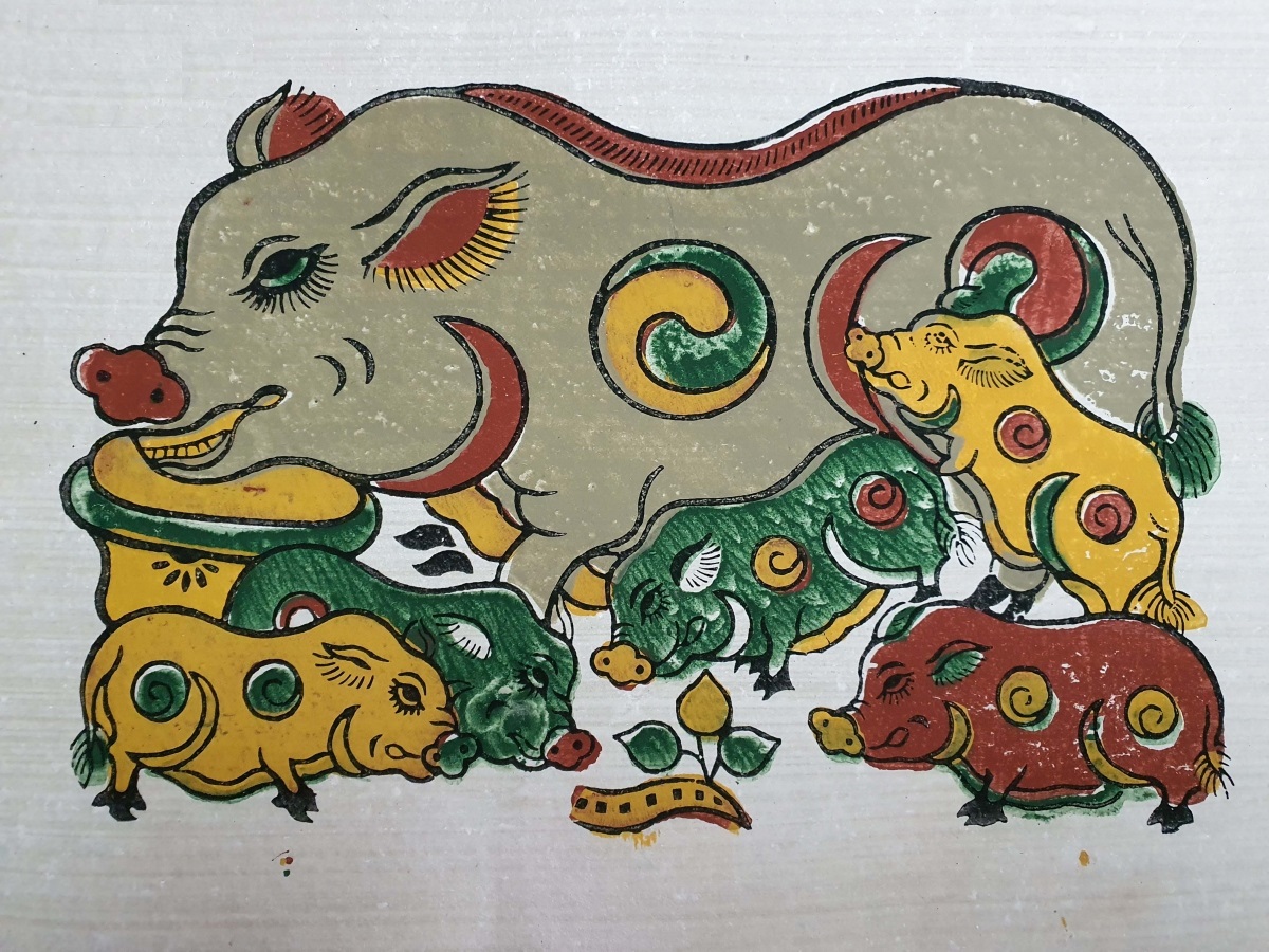 Pigs reproduce at a high rate, hence their image is popularly used in folk art to symbolize fertility, good luck, and a happy family with a multitude of descendants, especially in Dong Ho paintings, highly in demand during the New Year.